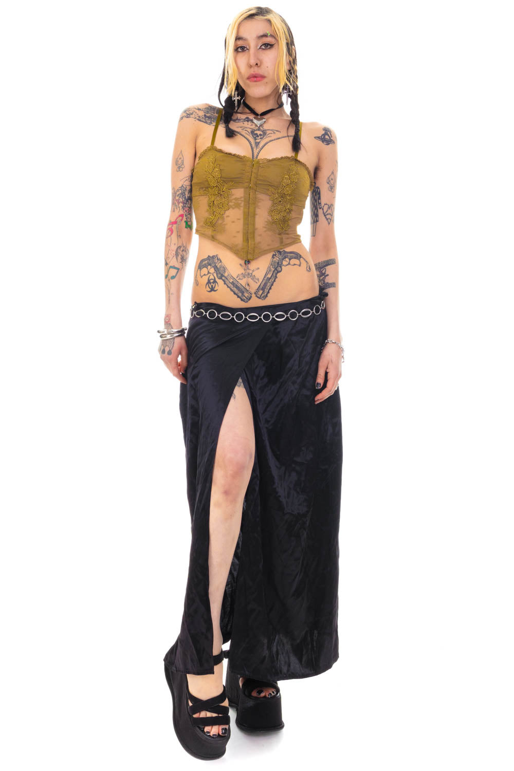 Vintage 90's Pop Black Silky Wrap Maxi Skirt