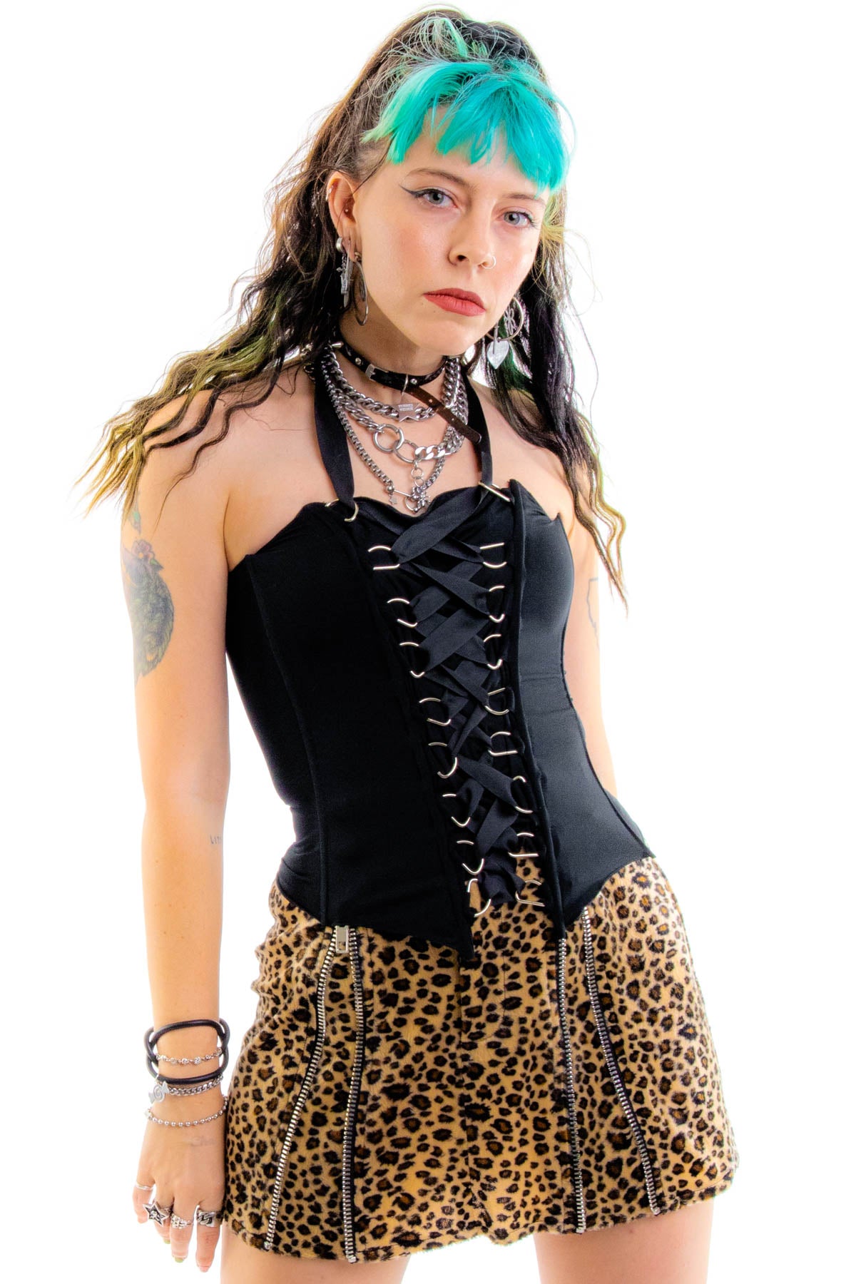 2002 y2k dreams witch corset with a stretchy spandex material very comfy with silver hardware with long black ribbon to lace up!!