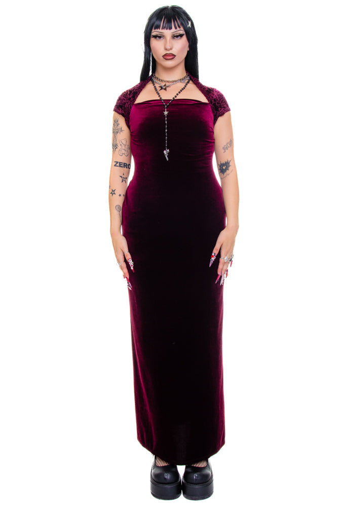 Vintage Y2K Bordeaux Velvet Vamp Maxi Dress