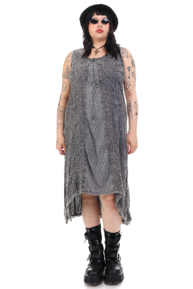 Vintage Y2K Faded Grey Embroidered Tank Dress - XL/2X