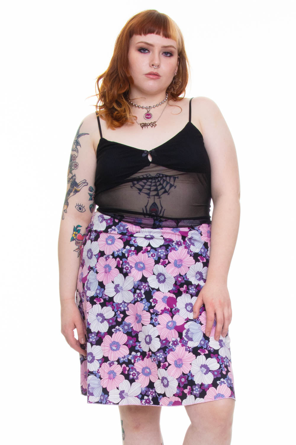 Vintage Y2K Pink and Purple Floral Midi Skirt
