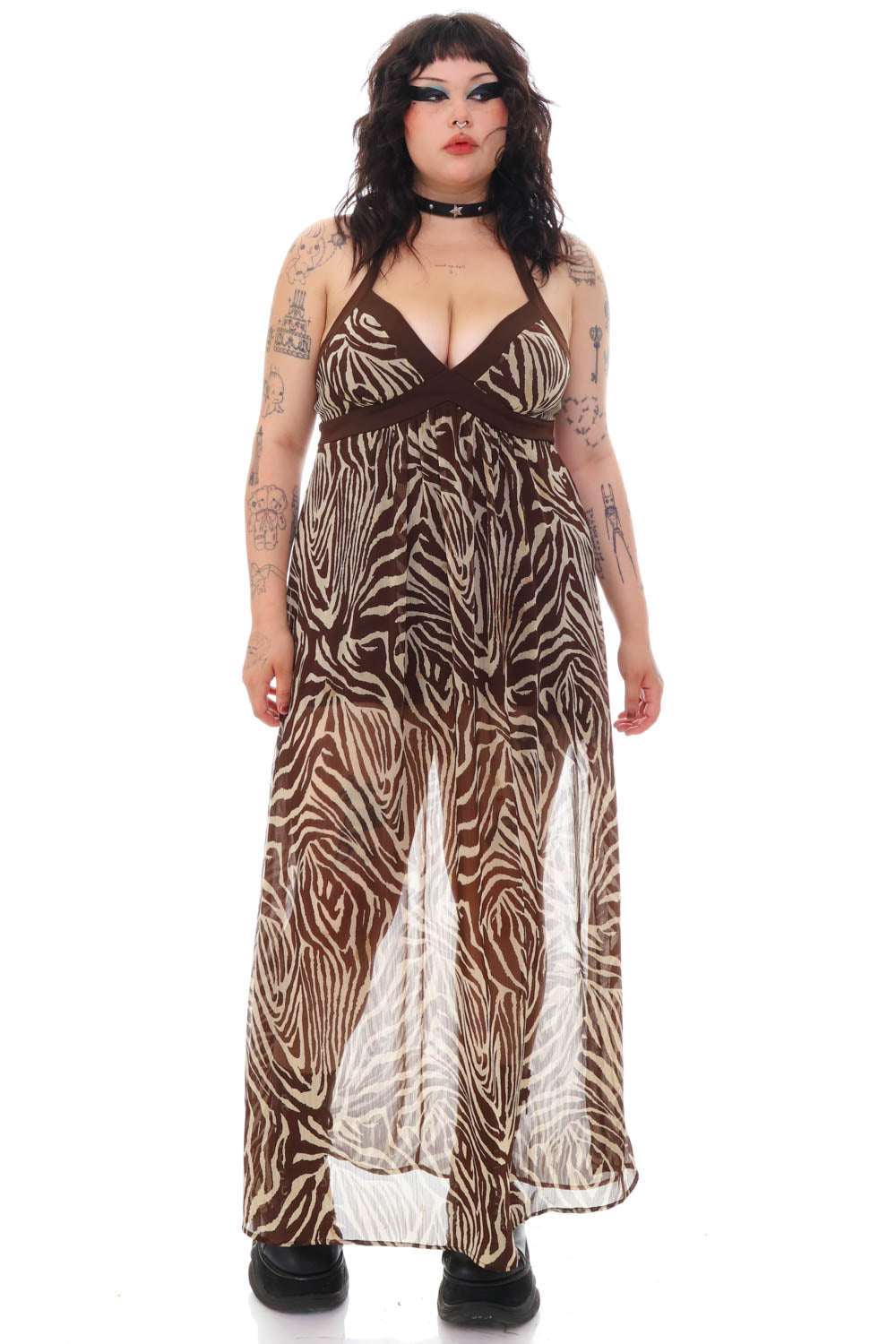 Vintage Y2K tank animal print maxi dress dress with cute all over print and side zipper closure! Slight stretchy fitted silhouette!