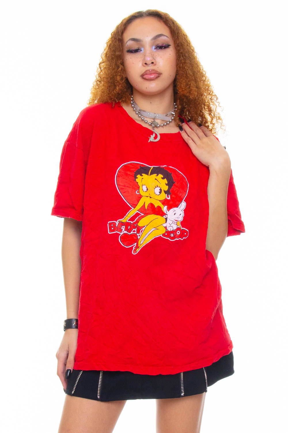 Vintage Y2K super cute bright red tee with a front graphic print of Betty Boop and her puppy! Supper cute!