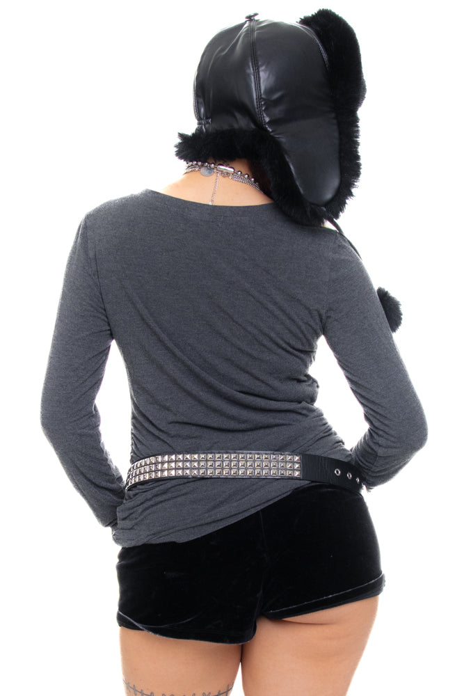 Vintage super soft knit grey long sleeve shirt with ruched sides!